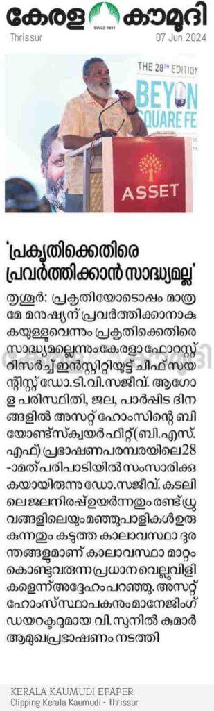 In honor of World Environment Day, Asset Homes hosted the 28th session of the Beyond Square Feet (BSF) lecture series on June 5th. Dr. T V Sajeev, Chief Scientist at the Kerala Forest Research Institute, led the discussion on the global environment, water management, and sustainable housing.