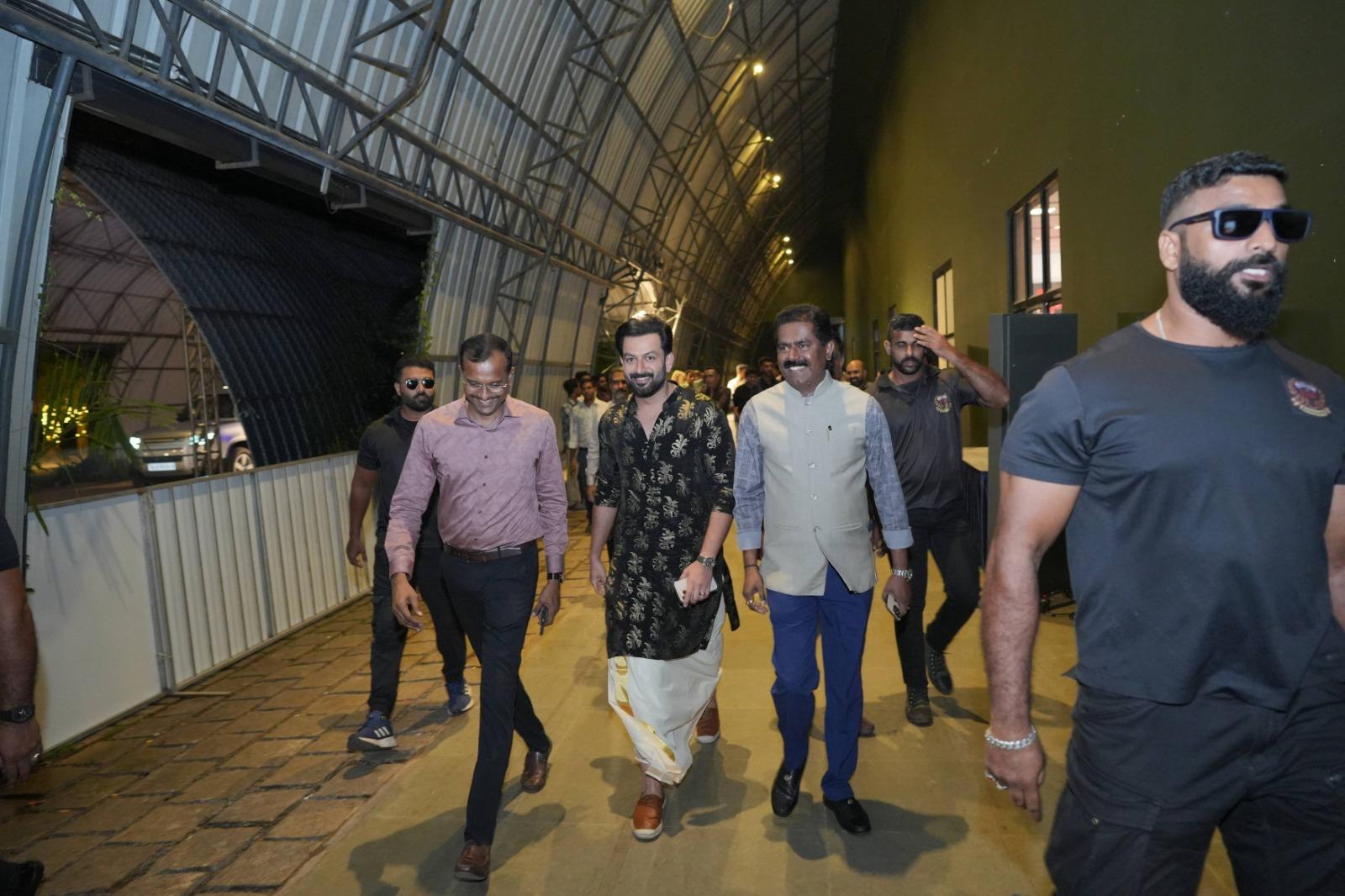 The night culminated in an exhilarating blend of interactions and entertainment, with the Meet & Greet continuing alongside a vibrant musical performance. Accompanied by Mr. Sunil Kumar, Mr. Jibin, and security personnel, Mr. Prithviraj Sukumaran made the evening truly special for everyone present.