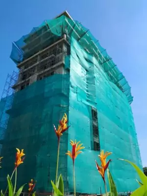 Reinforced Cement Concrete frame with solid cement blocks in fill walls. Earthquake resistance for Zone 3
