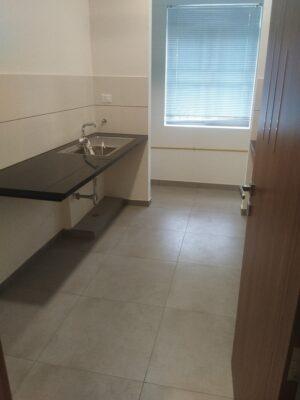 Granite kitchen counter, anti-scratch single bowl stainless steel sink with drain board. Provision for exhaust fan.