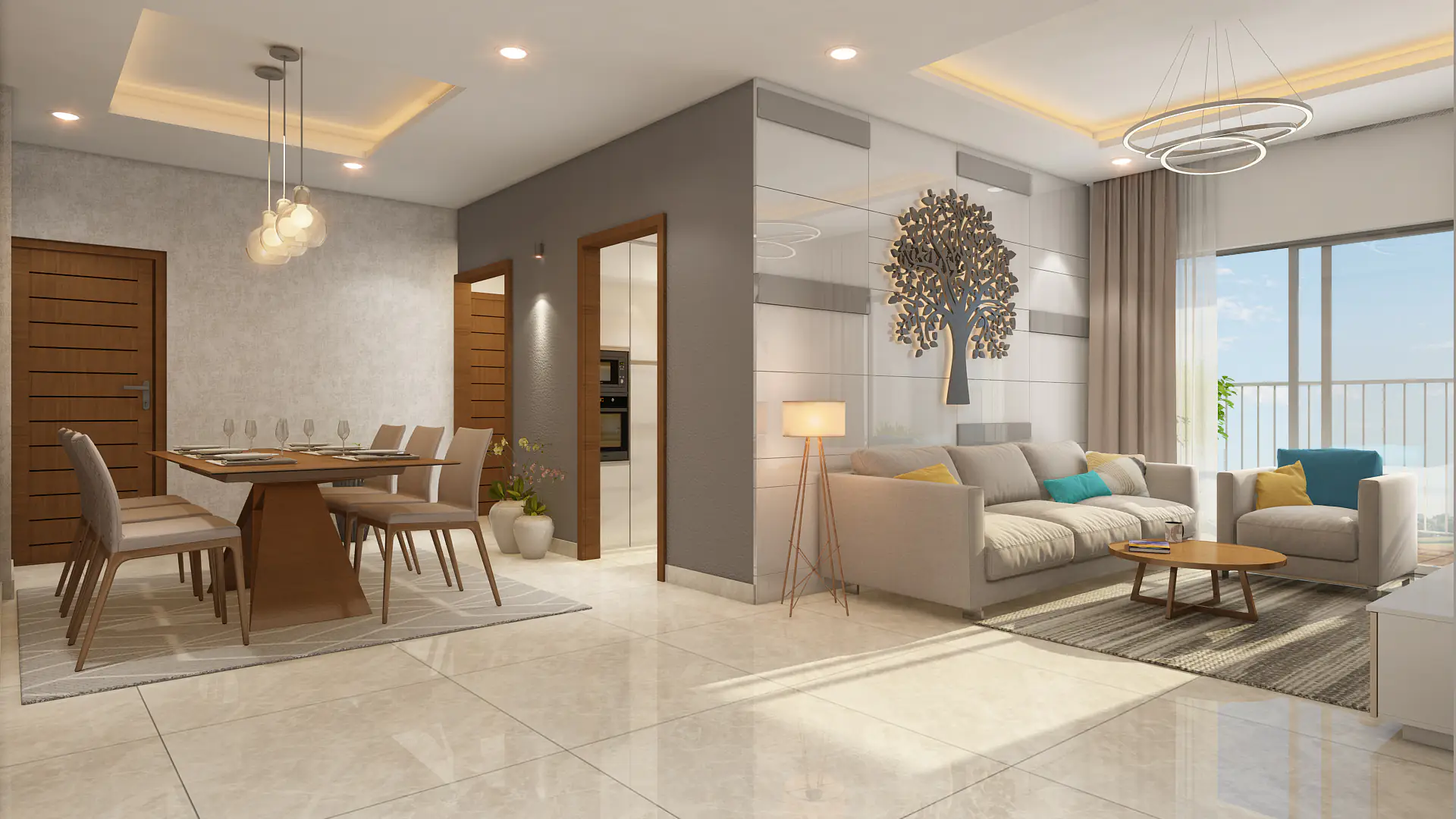 Living and Dining Floor :AGL/RAK/Kajaria or equivalent rectified/vitrified tiles