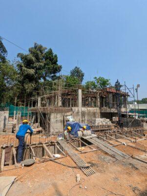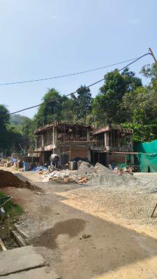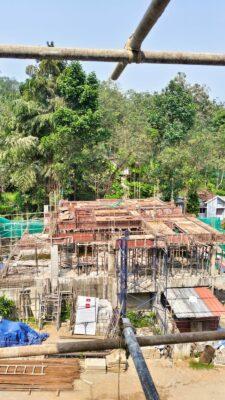 Reinforced cement concrete frame with porotherm blocks in fill walls.
