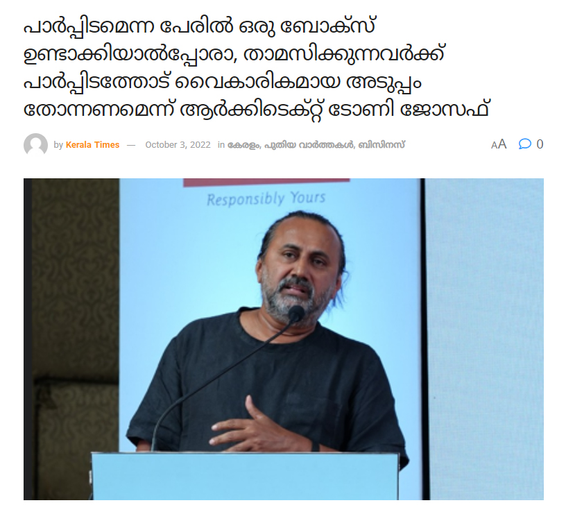 Architect Tony Joseph says that it is not enough to create a box called housing, but that the occupants should feel an emotional attachment to the housing.