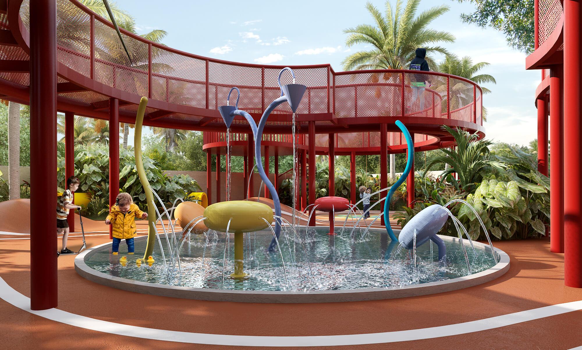 Listen closely - can you hear it? The splish splash of the Water Showers, like a tiny rainstorm just for kids. Jump in and feel the cool drops dance on your skin. It's a place for giggles, for skipping through puddles and for feeling the joy of a playful splash on a sunny day. Jump into the rain, feel the splash on your face, dance with the water, in a joyful embrace.