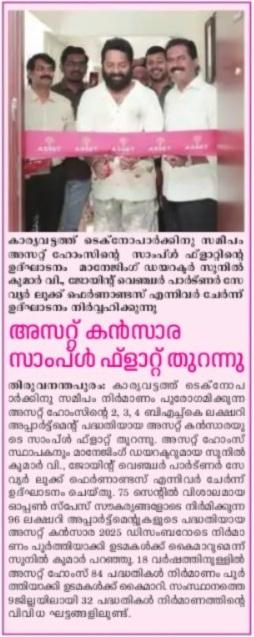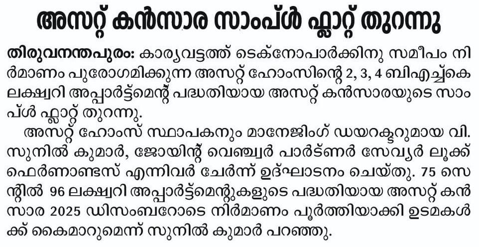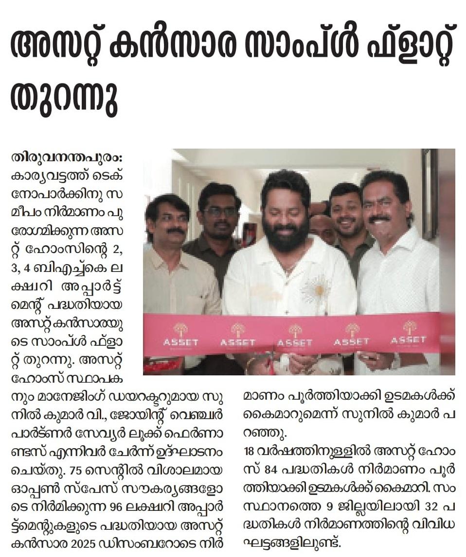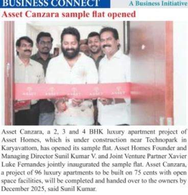 Thiruvananthapuram: Asset Homes has officially opened the sample flat for its latest luxury apartment project, Asset Canzara, near Technopark in Karyavattom. The project, which offers 2, 3, and 4 BHK apartments, is designed to meet the growing demand for premium urban housing in the city.