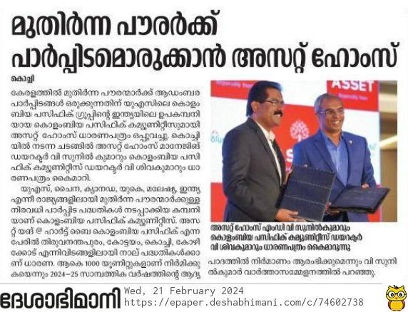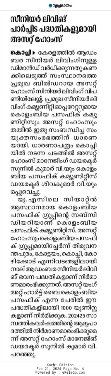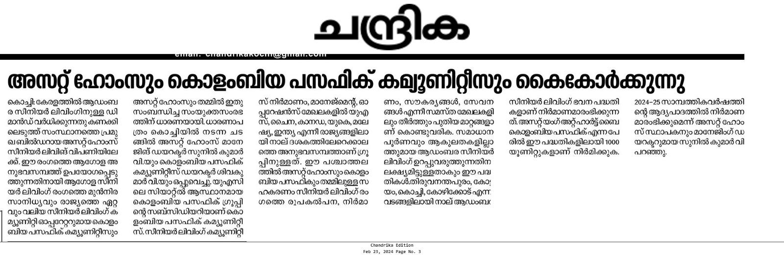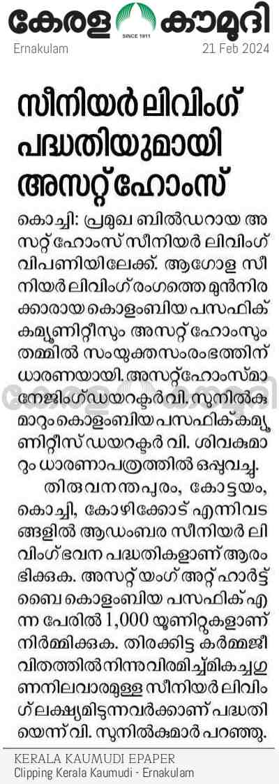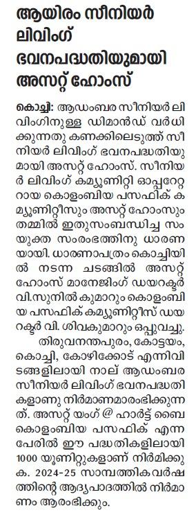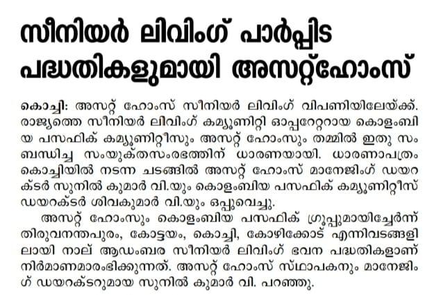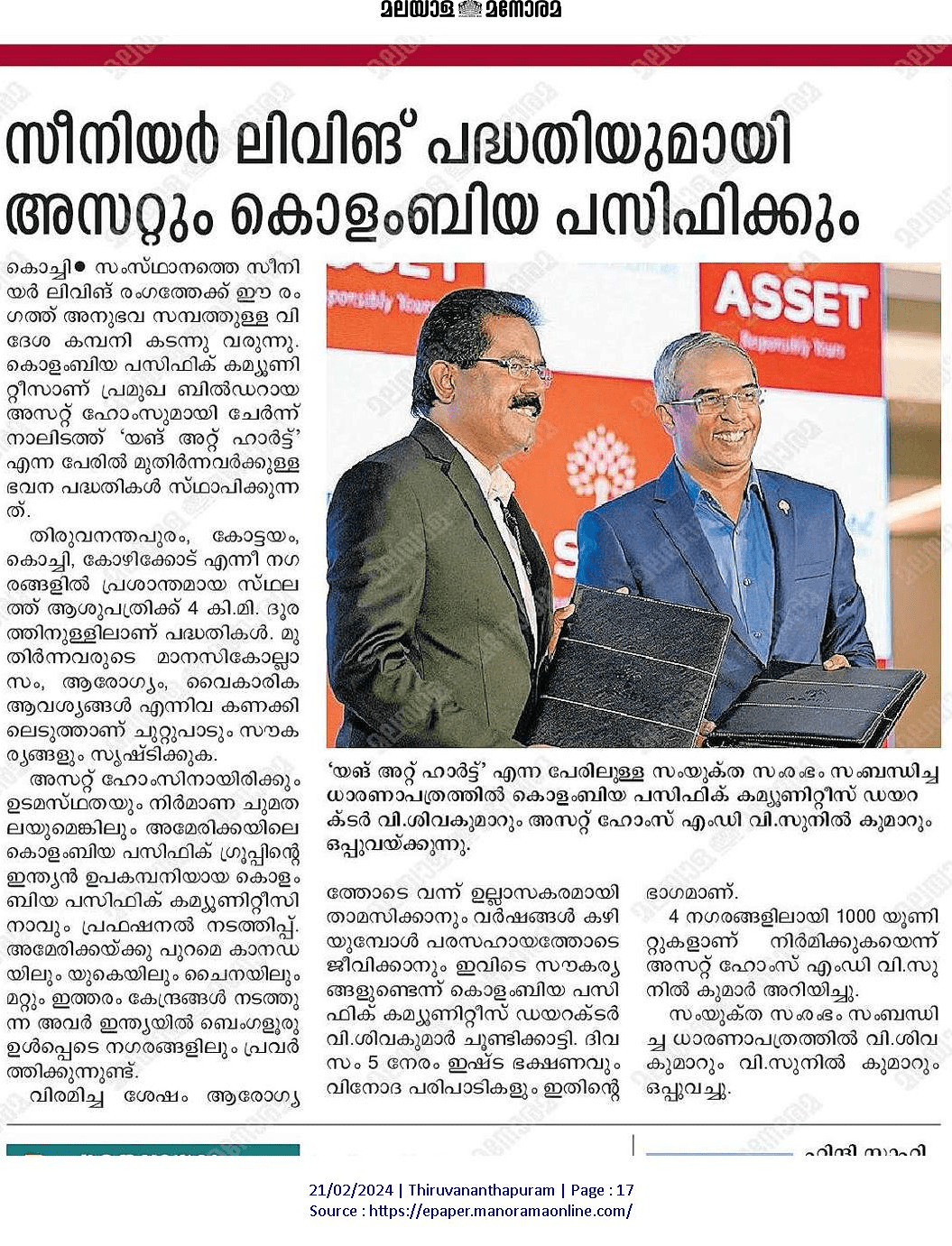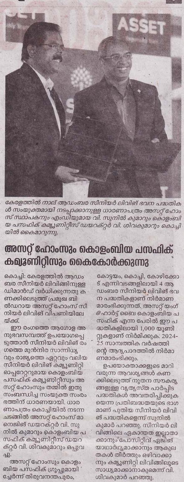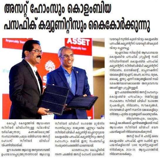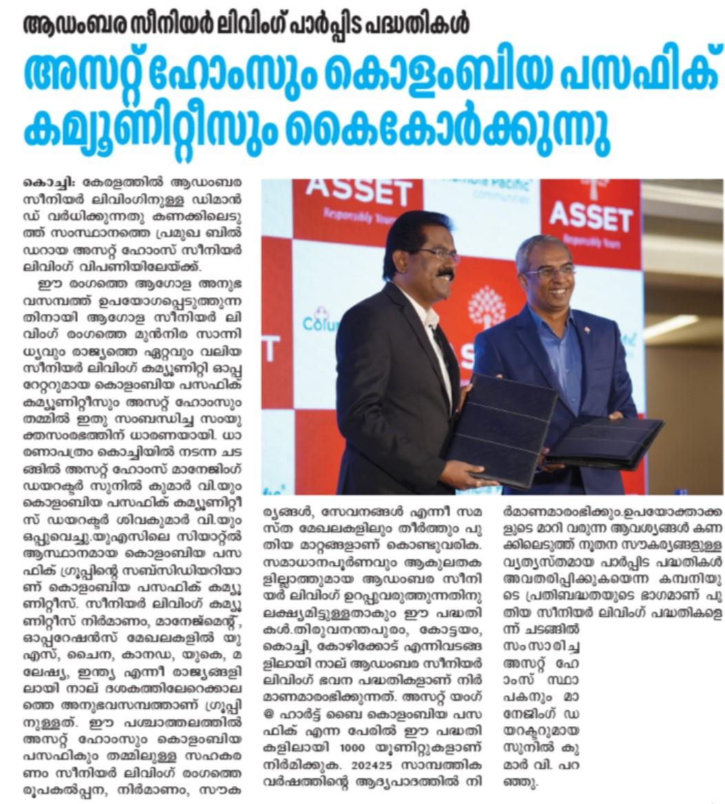 - https://www.onmanorama.com/news/business/2024/02/22/asset-homes-columbia-pacific-communities-tie-up-luxury-senior-living-projects-kerala.html