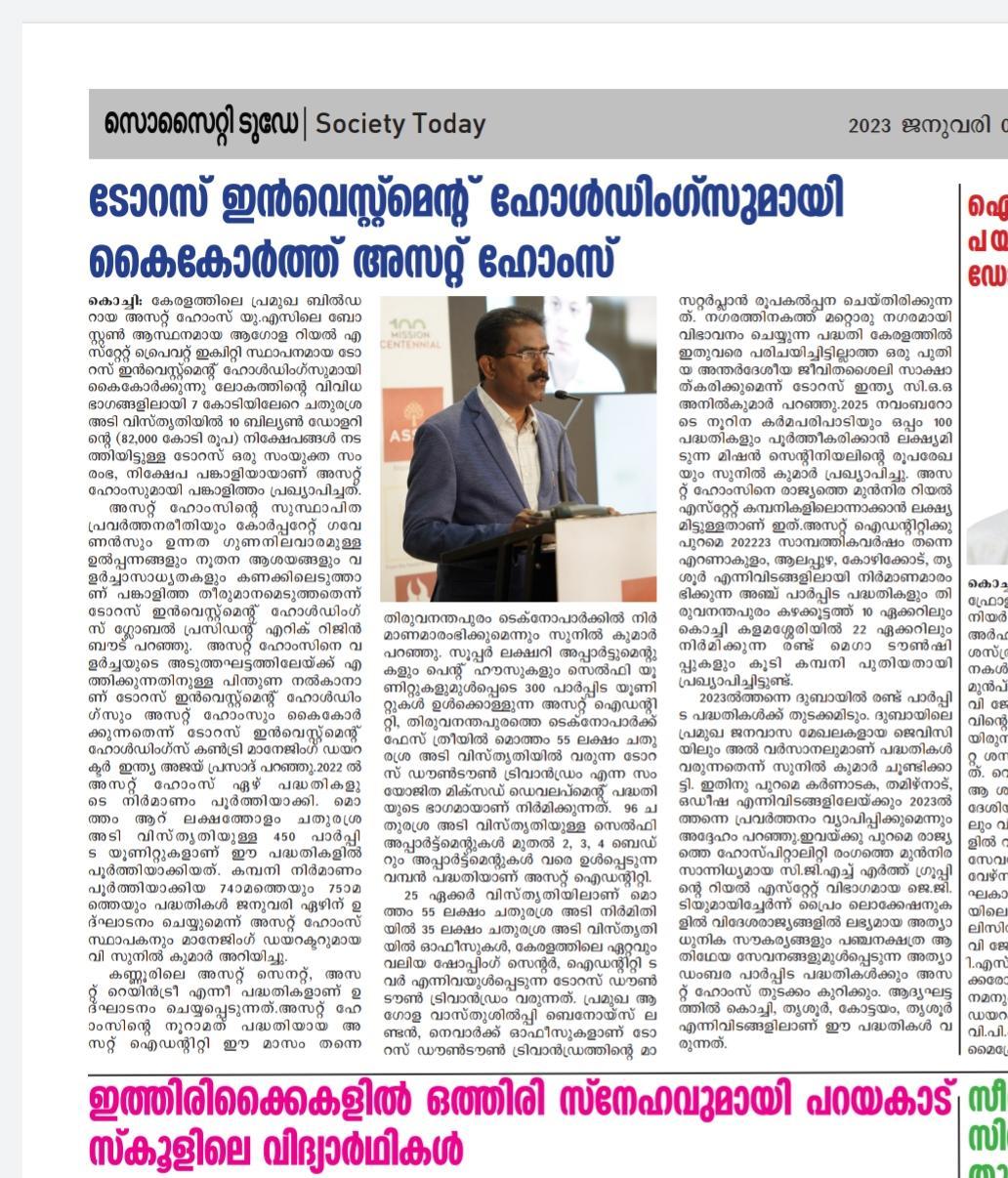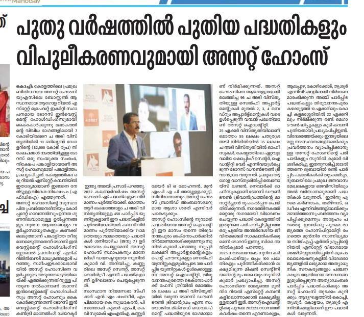 Sunilkumar Outlined a 3-year mega initiative – Mission Centennial, with 100 initiatives culminating with the completion of the 100th project by November 2025. This ambitious roadmap will put Asset Homes into the top-league Indian Real Estate industry.
