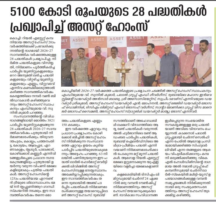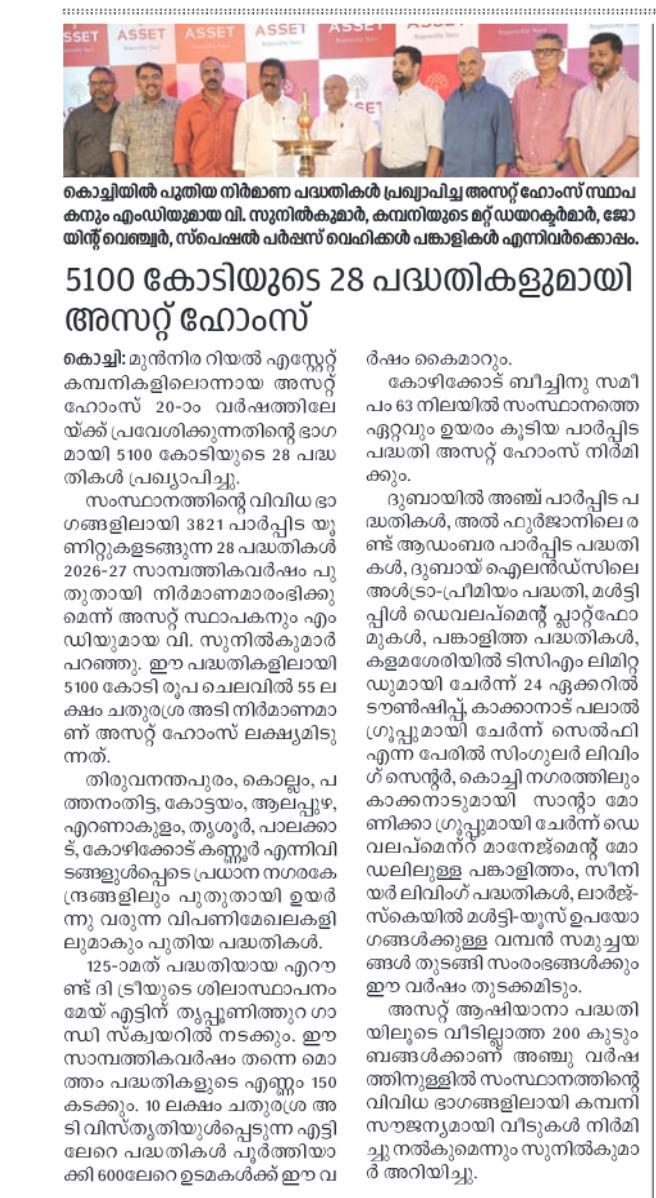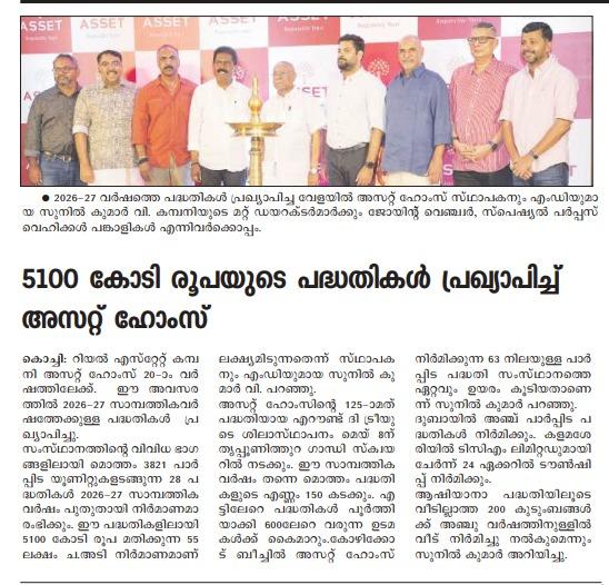 With this strategic roadmap, Asset Homes strengthens its position as one of Kerala’s most leading real estate developers, driven by innovation, growth, and customer-centric development.