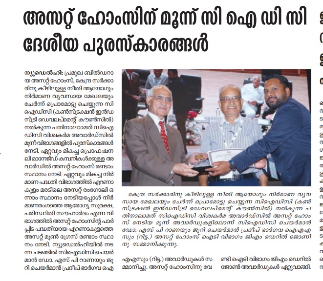 The Construction Industry Development Council (CIDC) has recently awarded three national honours to the renowned Indian real estate developer Asset Homes. The CIDC is a government organisation dedicated to promoting and developing the Indian construction industry, and their awards recognise excellence and innovation in a variety of construction-related fields.