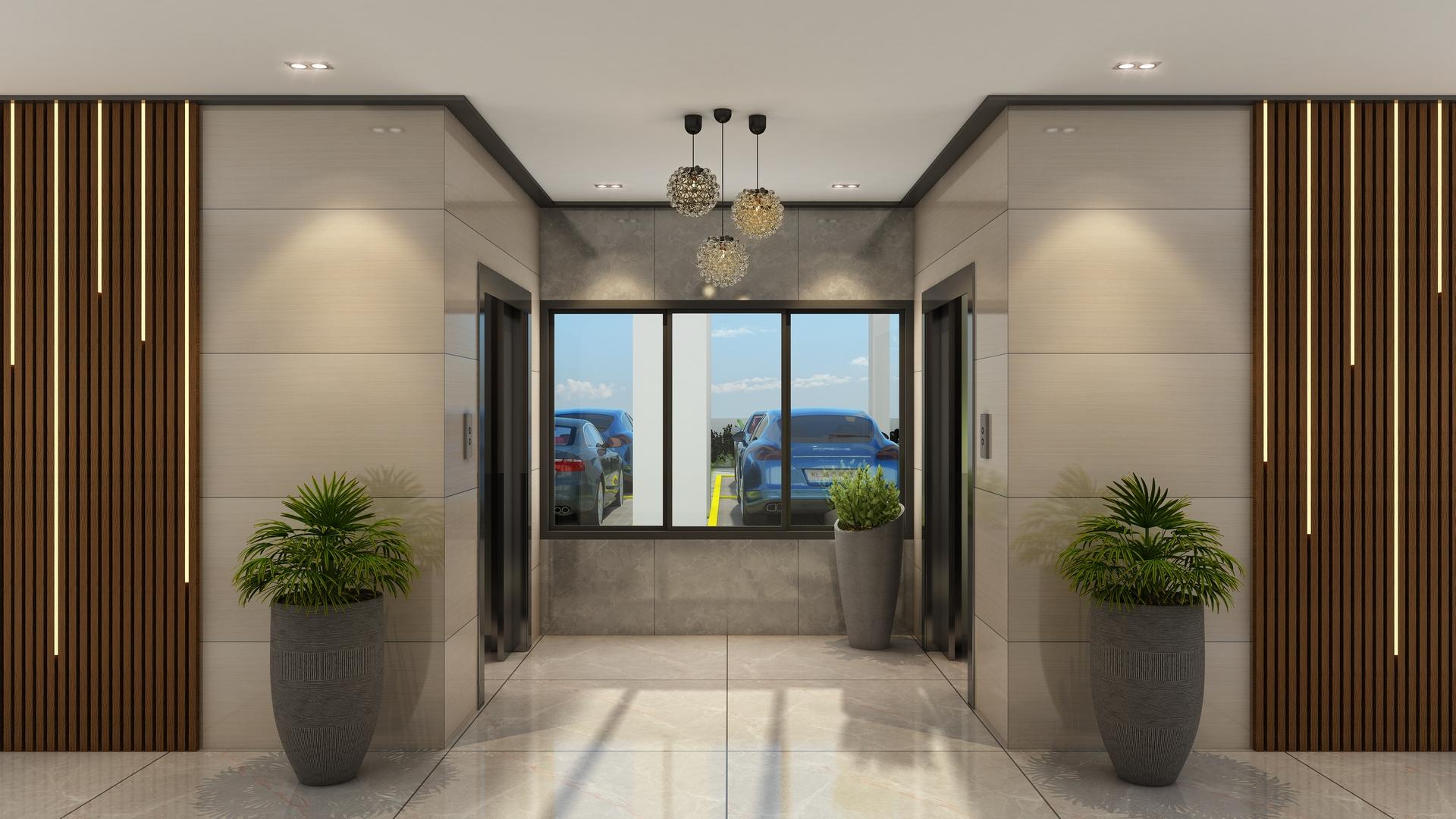 Concealed copper wiring. Adequate light points, fan points, 6 amps and 16 amps points, etc. with independent meters for each flat. Modular type switches. Generator backup up to 1200 watts per apartment.