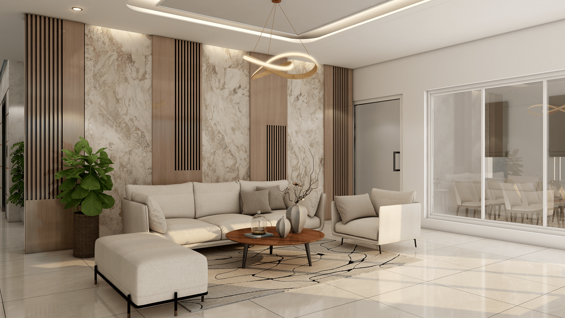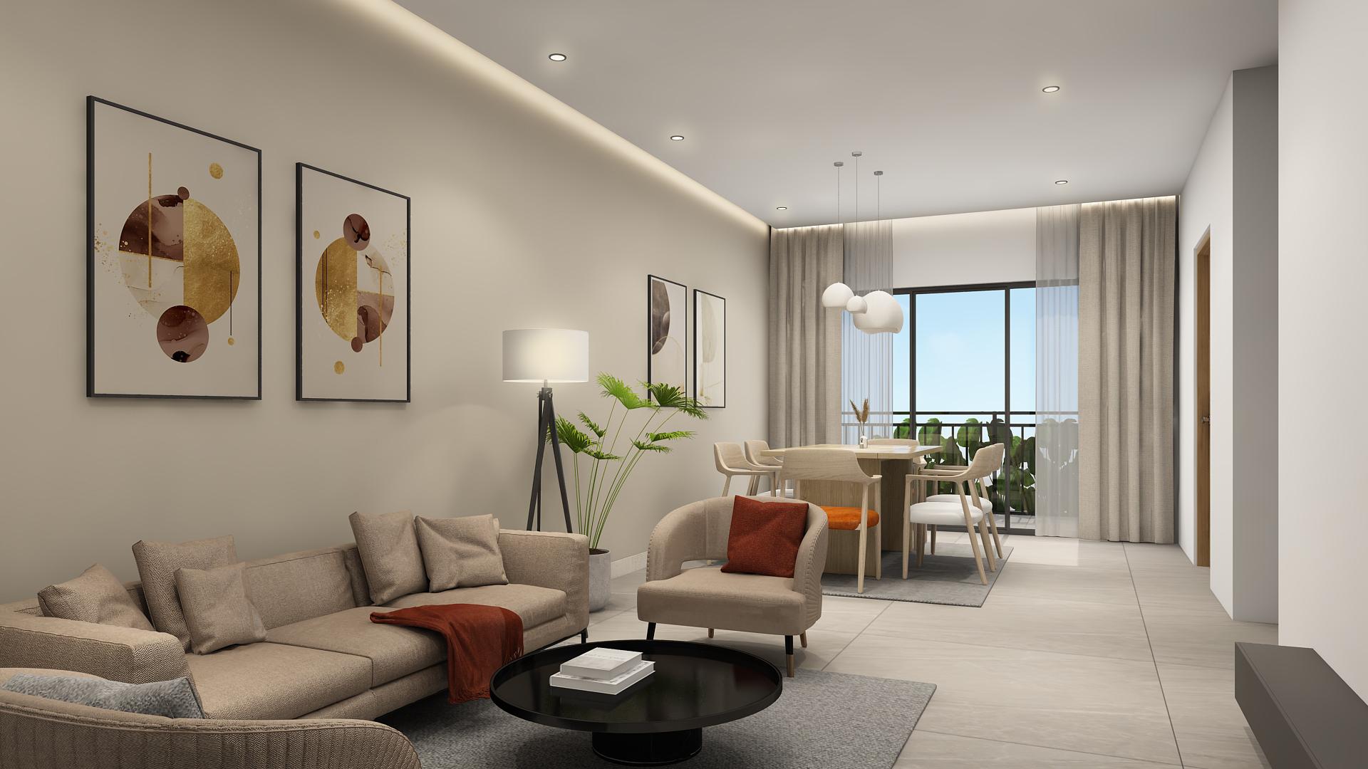 High quality vitrified/rectified tiles flooring with skirting for living, dining and bedrooms.