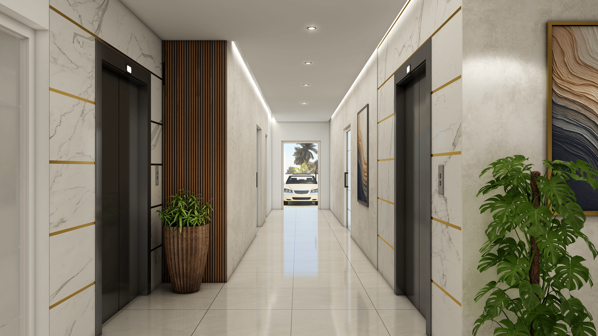 Entrance lobby, staircase & common areas will be of granite/vitrified/rectified tiles flooring.