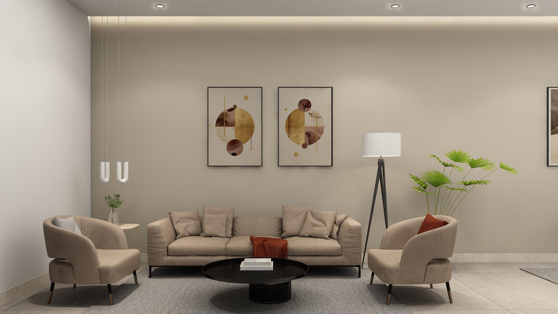 Putty finished emulsion paint for internal walls and enamel paint for window grills, external walls will be emulsion painted.