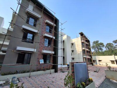 Reinforced cement concrete frame with porotherm blocks in fill walls.