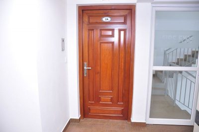 Front door shutter will be a designer teak wood one with 32mm thickness finished with Melamine / polyurethane coating. All door shutters shall be solid core flush/block board shutters.