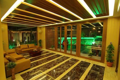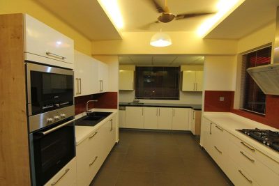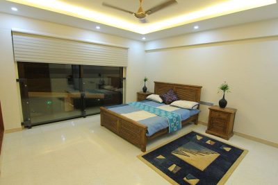 Door Shutters : Front door shutter will be a designer teak wood one with 32mm thickness finished with Melamine / polyurethene coating. All door shutters shall be solid core flush/block board shutters provided with natural wood veneer finish.