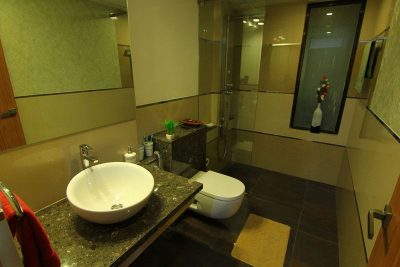 Faucets :All faucets shall be CP, heavy body metal fittings of Grohe/Jaquar or equal make. Provision for hot water connection shall be provided to the shower and washbasin in each bathroom and to the sink in the kitchen.