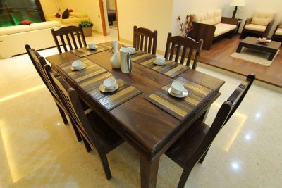 Living and Dining: A combination of laminated wooden fooring and or natural stones.