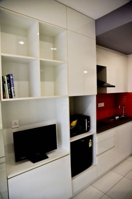 High quality vitrified tiles for the entire apartment, with vitrified skirting.