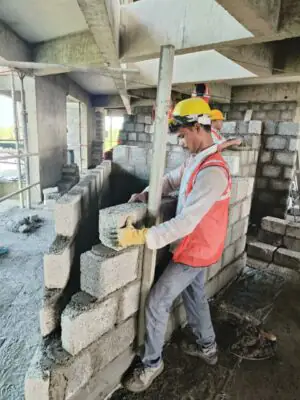 Reinforced Cement Concrete frame with solid cement blocks in fill walls. Earthquake resistance for Zone 3