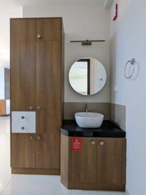 Designed ceramic / glazed wall tile cladding in bathrooms up to false ceiling height.