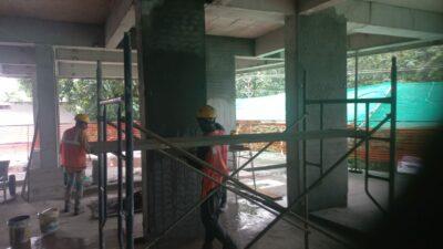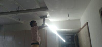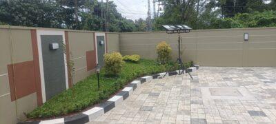 Putty finished emulsion paint for internal walls and enamel paint for doors and window grills. External walls will be emulsion painted.