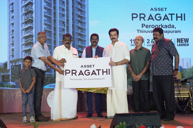 The celebration also featured the unveiling of Asset Homes’ newest project – Asset Pragathi, Peroorkada. The project’s logo was unveiled by Mr. Prithviraj Sukumaran (Brand Ambassador, Asset Homes), joined by Mr. Antony Raju (MLA, Thiruvananthapuram North Constituency), Mr. Reghuchandran Nair (CREDAI National Executive Member), Joint Venture Partners Mr. Manoj Kumar and Mr. Abraham N.C., and Mr. Sunil Kumar V (Founder & Managing Director, Asset Homes). This was followed by the official brochure release, handed over to architect of Asset Pragathi, Mr. Raju Devaraj, along with a walkthrough video preview of the project.