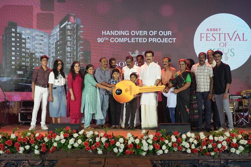 On the splendid evening of April 16th, 2025, Asset Homes proudly hosted the Festival of Keys at the Udaya Palace Convention Center, Thiruvananthapuram – marking the grand completion and handover of its 90th project, Asset Sovereign. The celebration was a heartfelt tribute to new beginnings, built with commitment, care, and community spirit.