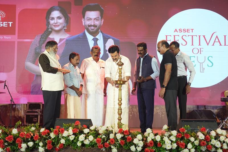 A significant moment followed as the ceremonial lamp was lit by an esteemed panel including Mr. Prithviraj Sukumaran (Brand Ambassador, Asset Homes), Mr. Antony Raju (MLA, Thiruvananthapuram North Constituency), Mr. Hari Kumar C (Ward Councilor, Thampanoor), Joint Venture Partners Mr. Rayfe Joseph and Mr. B.S. Bhasi, Mr. Sunil Kumar V (Founder & Managing Director, Asset Homes), and Mr. Tony John (CEO, Asset Homes), symbolizing the light of prosperity for every home and family present. The gathering was captivated by Mr. Prithviraj Sukumaran’s inaugural address, where he applauded the legacy of Asset Homes and shared his heartfelt wishes with the new homeowners.
