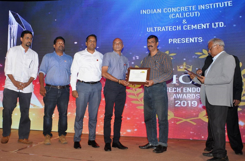 L Mahesh, Chief Technical Officer receives the Outstanding Concrete Structure (Residential) Award for Asset Grandstand at the ICI UltraTech Awards 2019, instituted by Indian Concrete Institute.