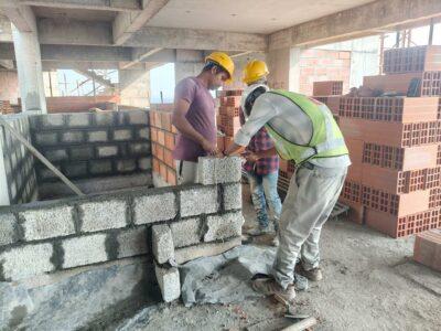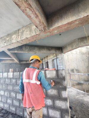 Reinforced cement concrete frame with solid cement blocks in fill walls. Earthquake resistance as per IS Standards