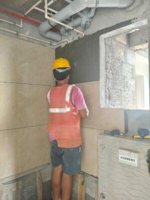 Ceramic/vitrified wall tile cladding in bathrooms up to false ceiling height
