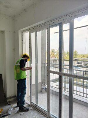 Fully glazed powder coated Aluminium/ UPVC windows with M. S. grills