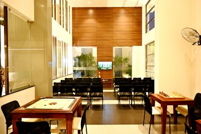 Multi recreation hall with indoor games like cards, chess, caroms, etc.