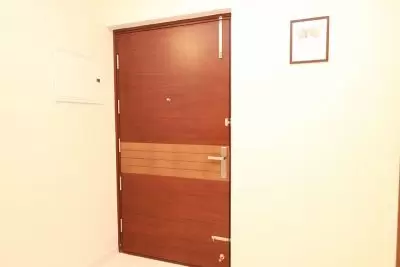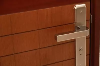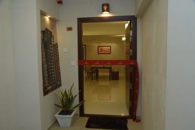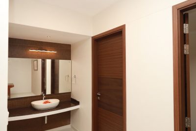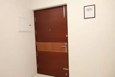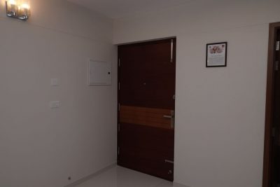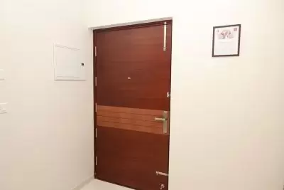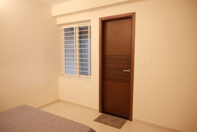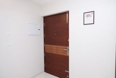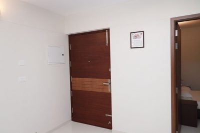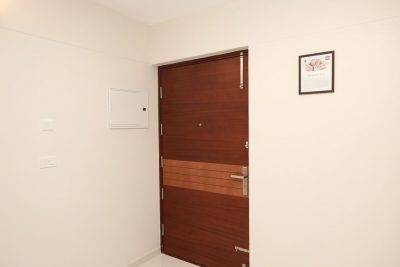 Main door: Engineered wood frames with architrave and designer engineered wood shutter- Fero or equivalent