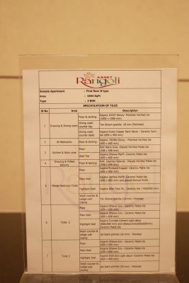 High-quality vitrified tiles with vitrified skirting for Living, Dining and Bedrooms. Antiskid/matt tiles - ceramic/vitrified for Kitchen, Balcony and Toilets. Entrance lobby, Staircase & Common areas will be of granite/vitrified flooring.