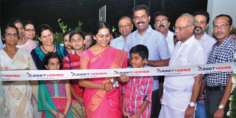 Smt. Soumini Jain, Mayor, inaugurates the 42nd completed project of Asset Homes – Asset Bellevue at Pallimukku. Shri. Sunil Kumar V., Managing Director, Asset Homes and Shri. Mohan N., Director, Shri George Korah, Advisory Board member, Shri Mahesh, Chief Technical Officer are also seen.