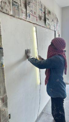 Putty finished emulsion paint for internal walls and enamel paint for doors and window grills, external walls will be emulsion painted