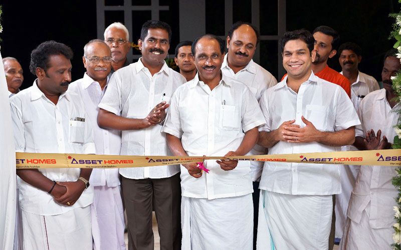 Sri K Babu, Minister for, Fisheries, Ports and Excise, inaugurating Asset Ocean Grove, the 39th completed project of Asset Homes at South Chittoor. Also seen are Sri Hibi Eden, MLA, Ernakulam; Sri Suresh Babu, President, Cheranalloor Panchayath; Sri Sunil Kumar V, MD, Asset Homes, Sri P N Mohanan, Director, Asset Homes.