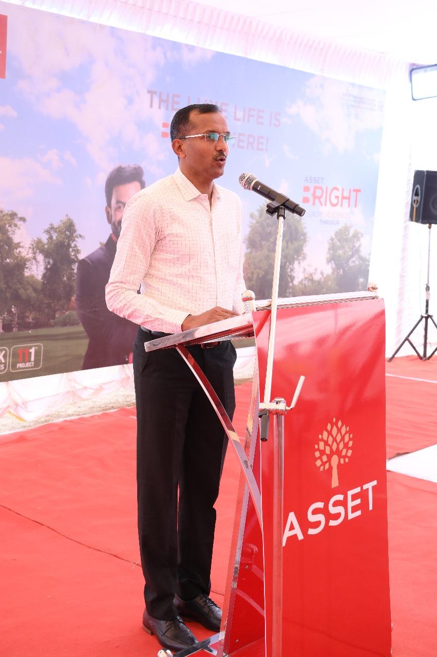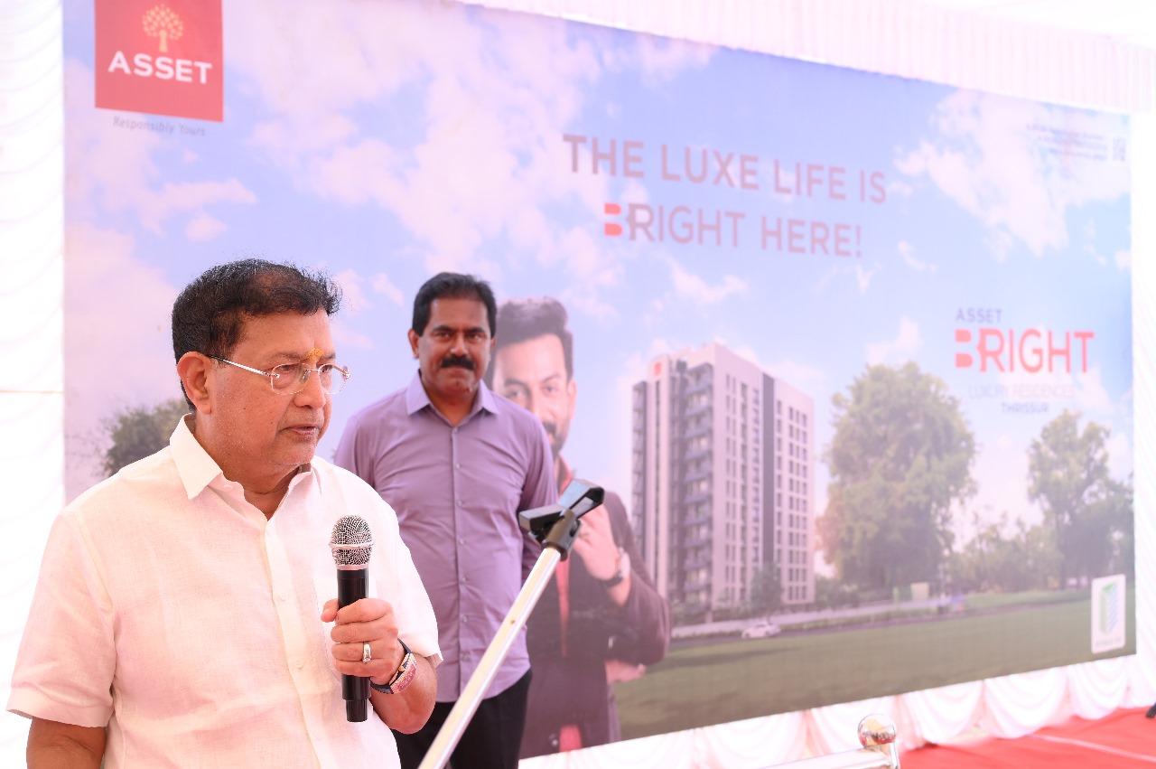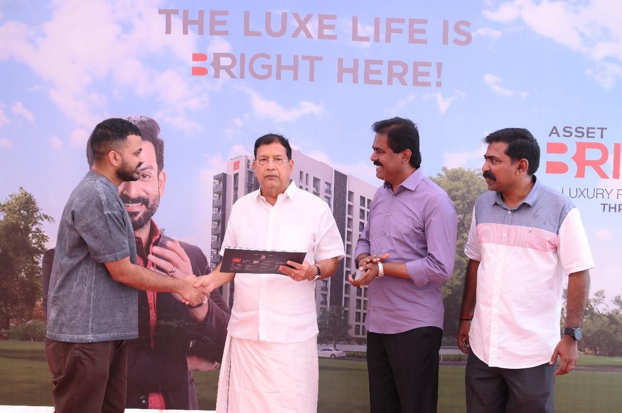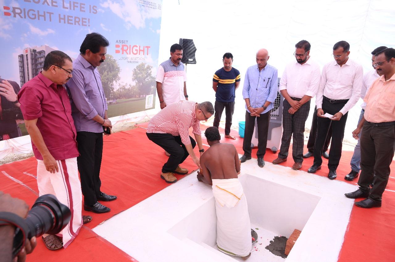 The Stone Laying Ceremony at Asset B Right Luxury Residences in Thrissur featured key figures, including Mr. V Sunil Kumar (Founder & MD, Asset Homes), Mr. Joseph Simon of Ambica Construction, and Mr. Antony Paul A (Chairman, Bright Credits & Real Estate Ltd). Additionally, the brochure was released by Mr. T.S Pattabhiraman (Chairman & Managing Director, Kalyan Silks) to Mr. Ajith Paul, B Right 8A customer.