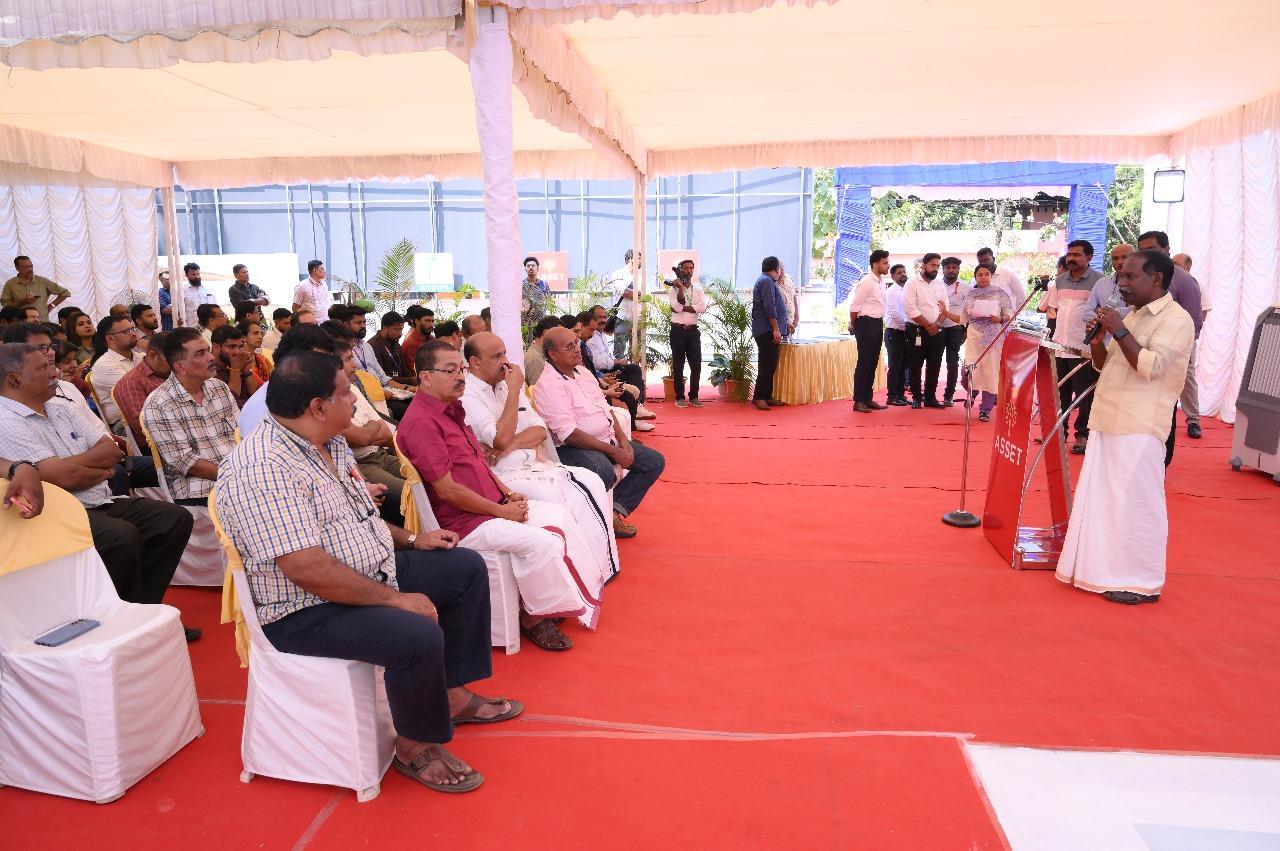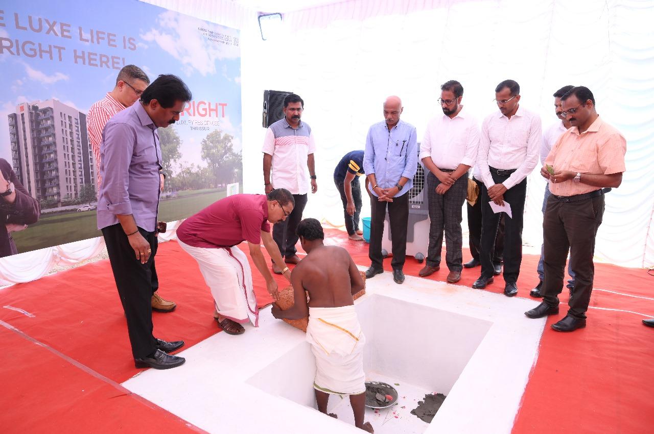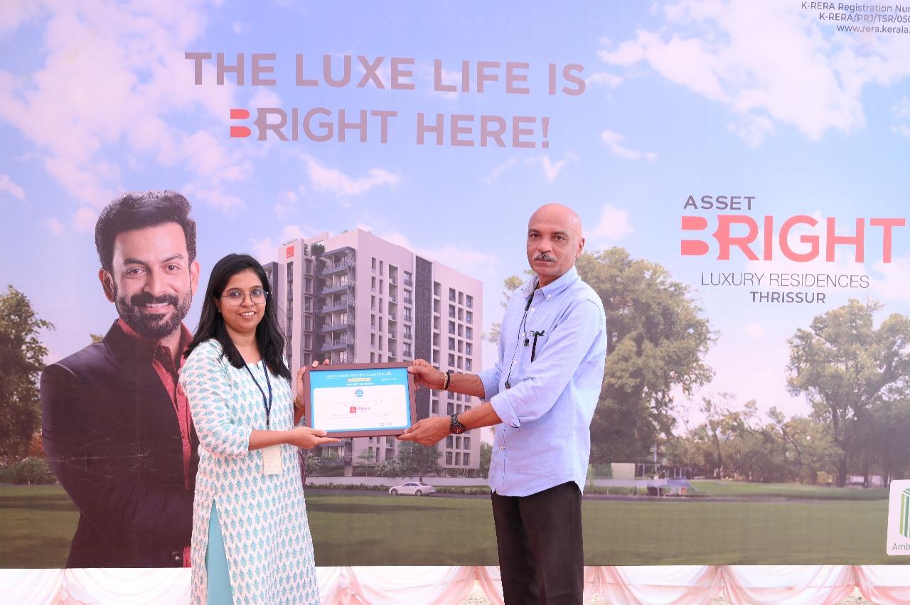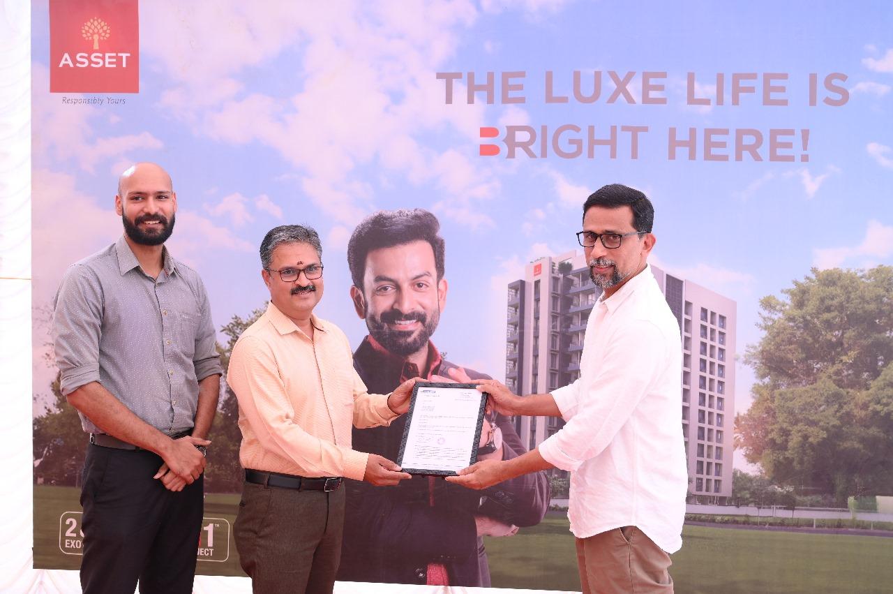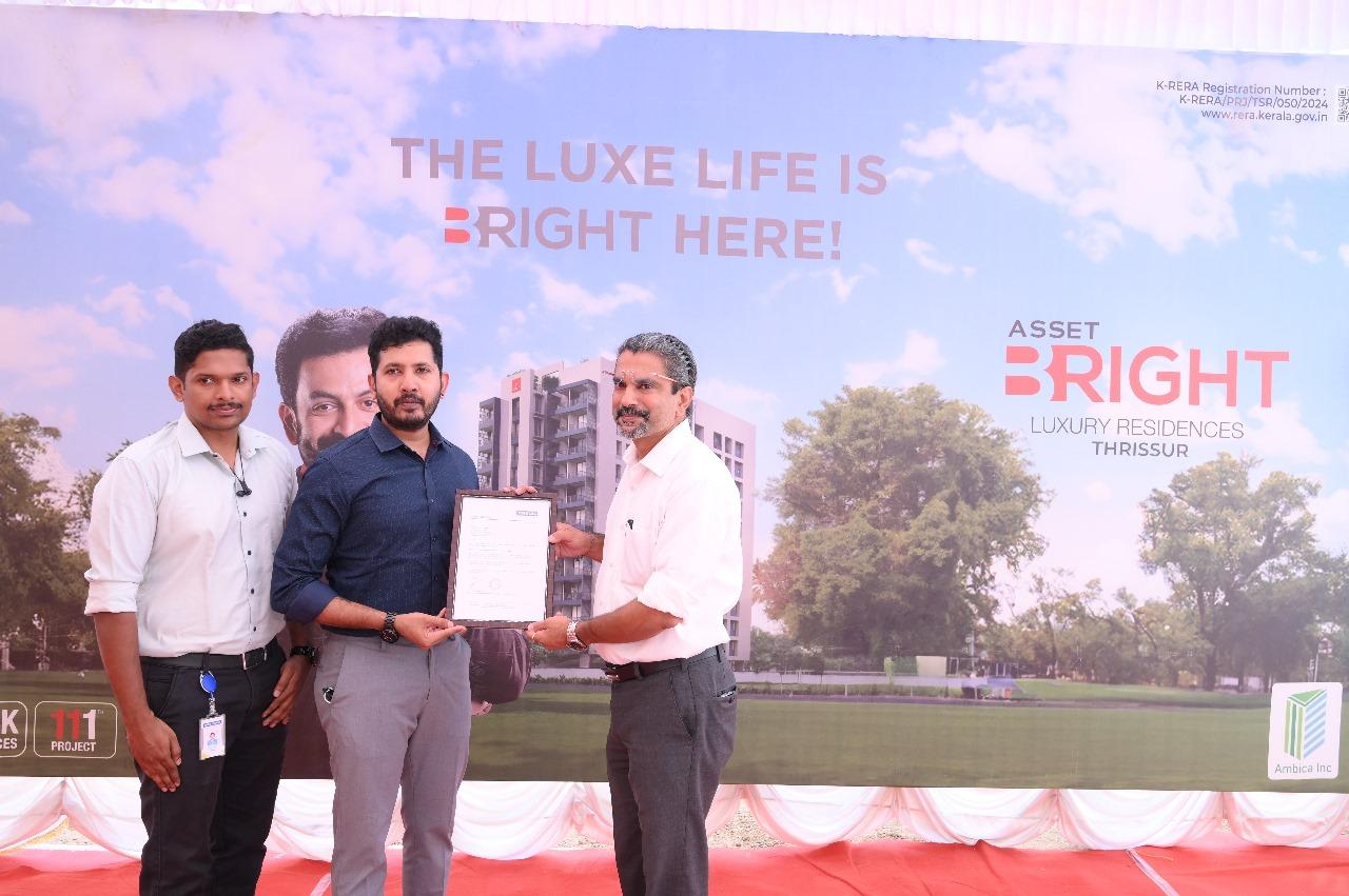 The Stone Laying Ceremony at Asset B Right Luxury Residences in Thrissur featured key figures, including Mr. V Sunil Kumar (Founder & MD, Asset Homes), Mr. Joseph Simon of Ambica Construction, and Mr. Antony Paul A (Chairman, Bright Credits & Real Estate Ltd). Additionally, the brochure was released by Mr. T.S Pattabhiraman (Chairman & Managing Director, Kalyan Silks) to Mr. Ajith Paul, B Right 8A customer.