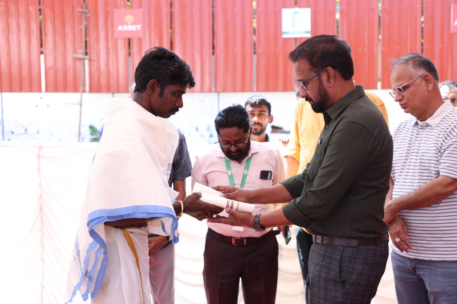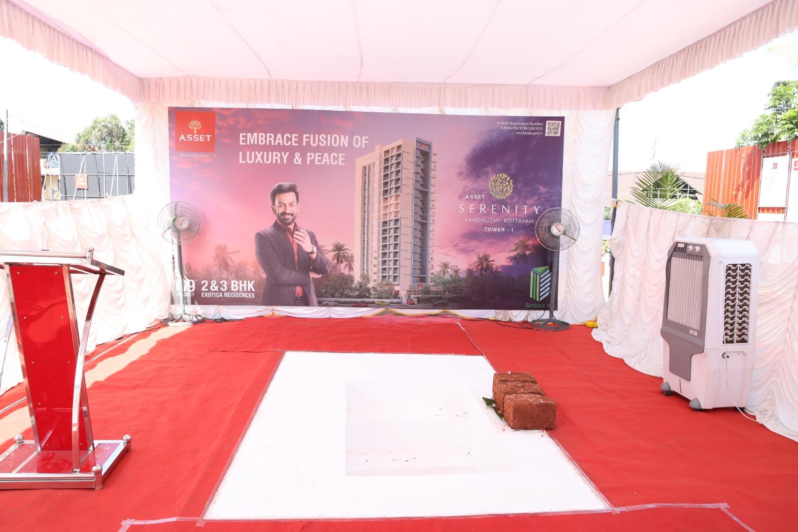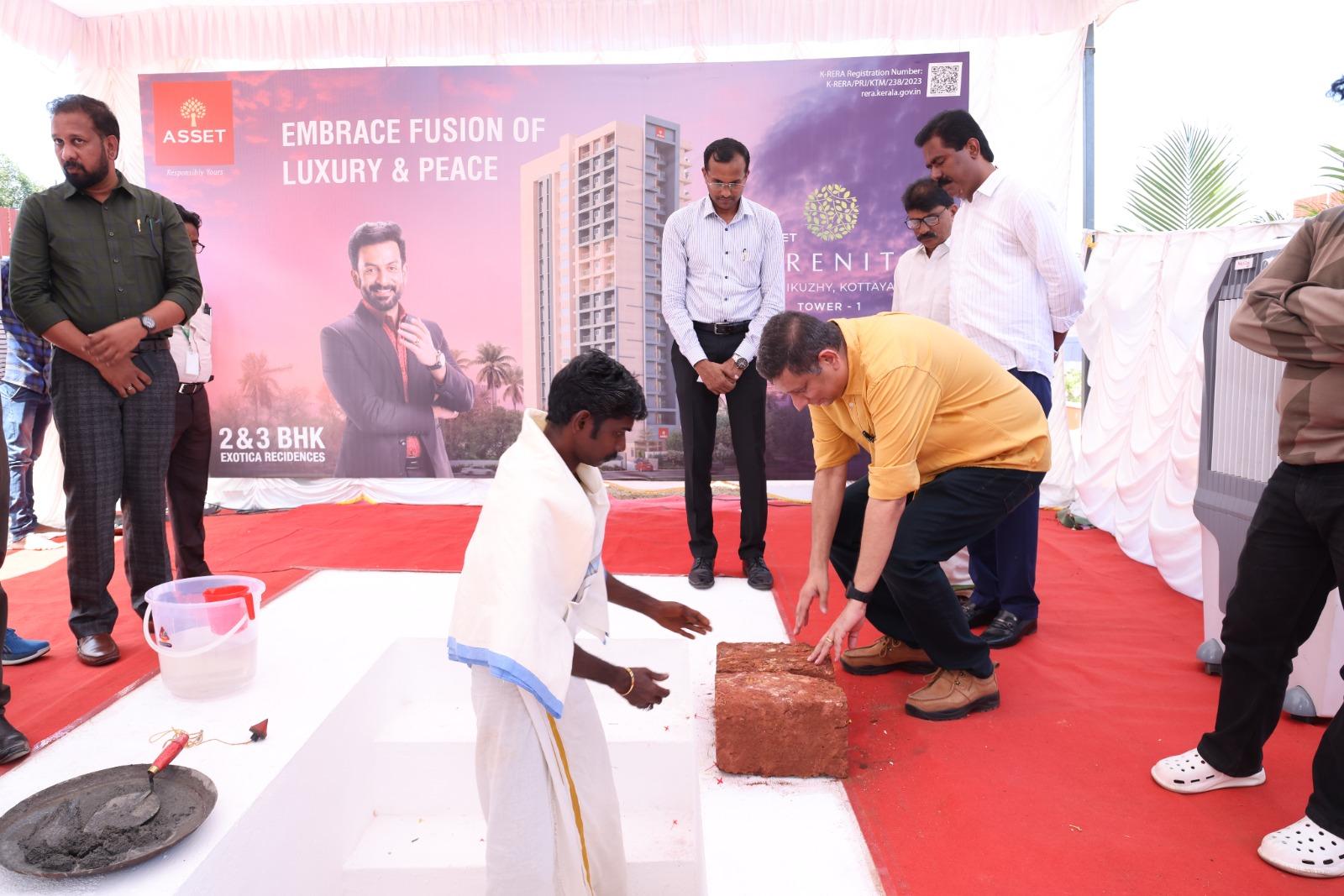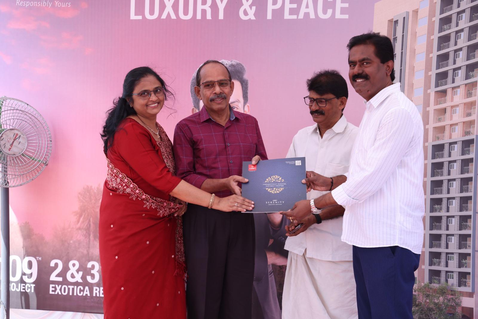 The foundation stone Asset Serenity, 109th project by Asset Homes at Kanjikuzhy, Kottayam, was laid jointly by Councillor Mr. Julius Chacko, Founder and Managing Director of Asset Homes Mr. Sunil Kumar V, Mr. Joseph Simon of Ambika Constructions. This residential project with 2 and 3 BHK apartments comes in the Exotica category by Asset Homes. Mr. Sunil Kumar V handed over the first copy of the brochure of Asset Serenity to Apartment 9C customers Mr. George Kanakkattu Varkey and Mrs. Susan George. Asset Homes CEO Mr. Tony John welcomed the gathering and Asset Homes Kottayam Branch Head Mr. Clint J Elanjical proposed the vote of thanks.
