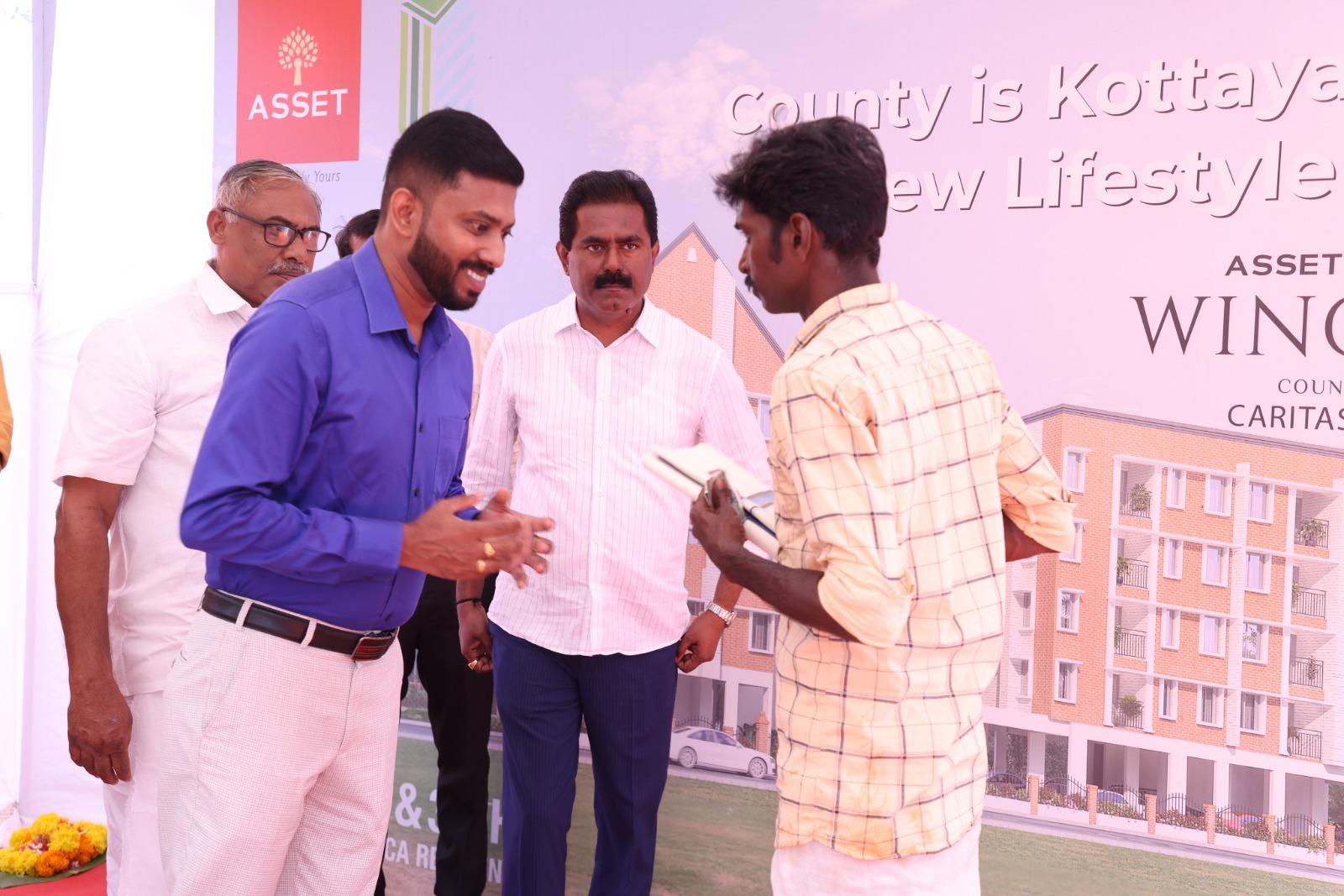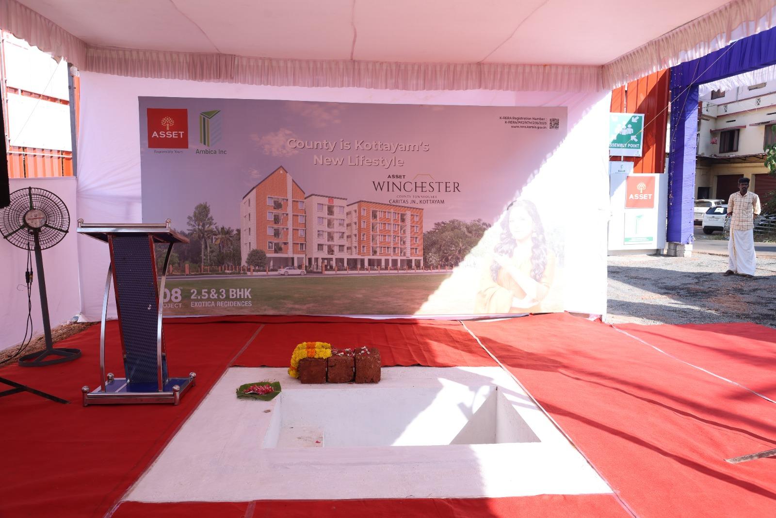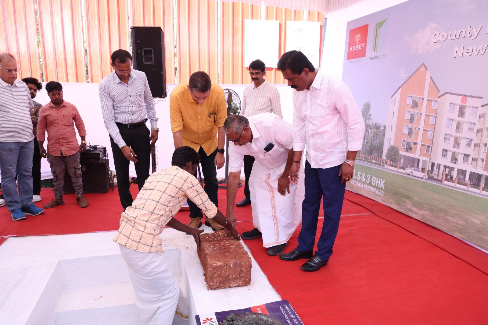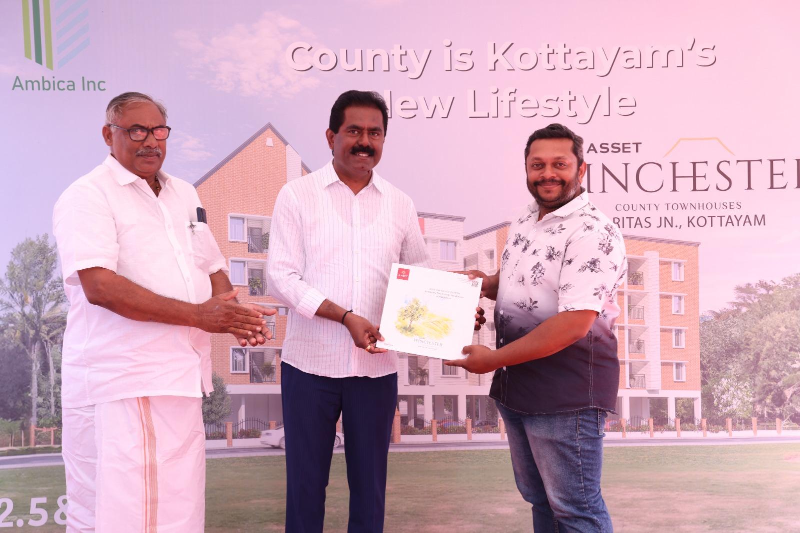 The foundation stone Asset Winchester, the county-style residential project by Asset Homes at Caritas Junction, Kottayam, was laid jointly by Councillor Mrs. Ansu Joseph, Founder and Managing Director of Asset Homes Mr. Sunil Kumar V, Mr. Joseph Simon of Ambika Constructions. The 108th project has 2.5 and 3 BHK apartments. Mr. Sunil Kumar V handed over the first copy of the brochure of Asset Winchester to Channel Partner Shri. Jinu C P. Asset Homes CEO Mr. Tony John welcomed the gathering and Asset Homes Kottayam Branch Head Mr. Clint J Elanjical proposed the vote of thanks.