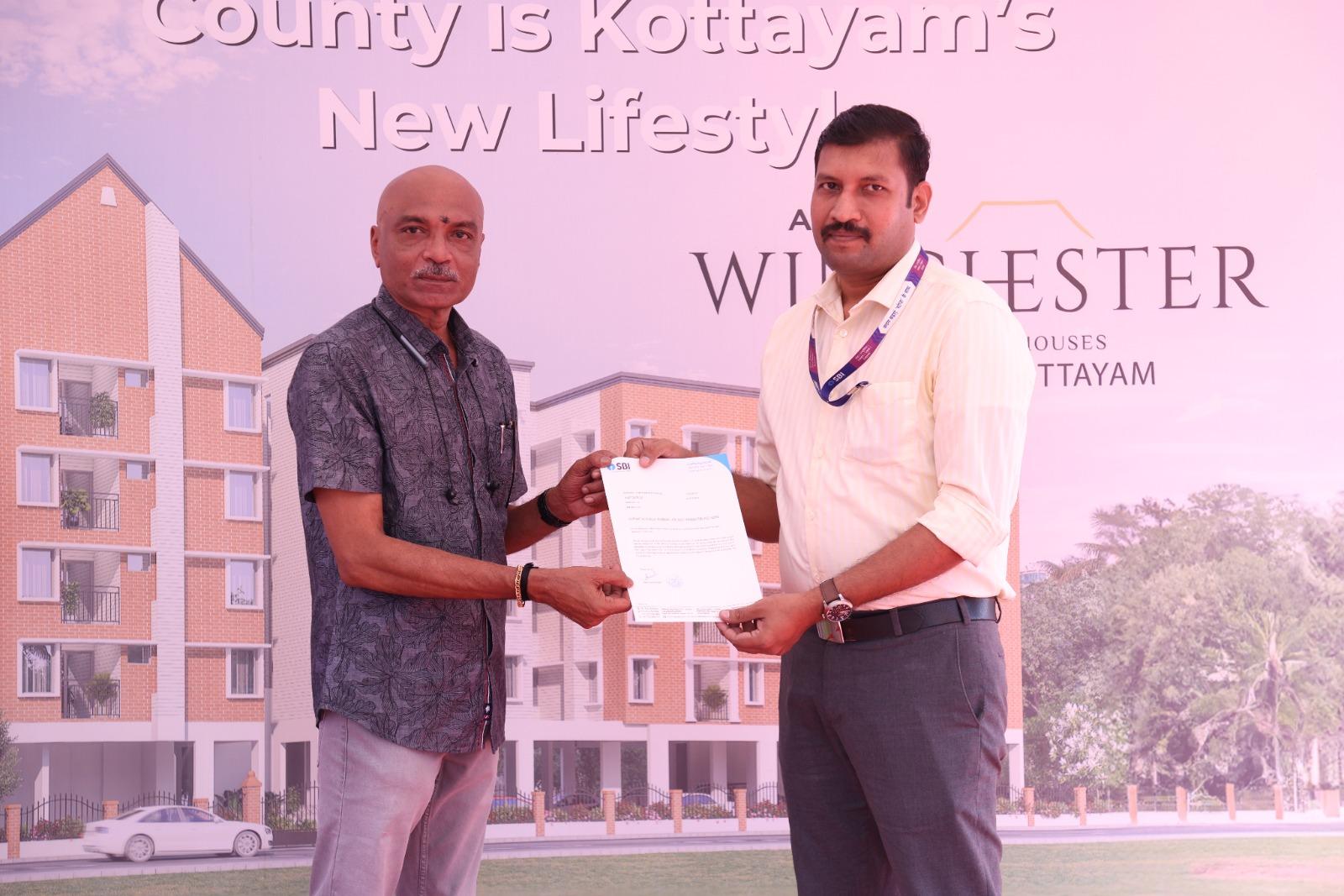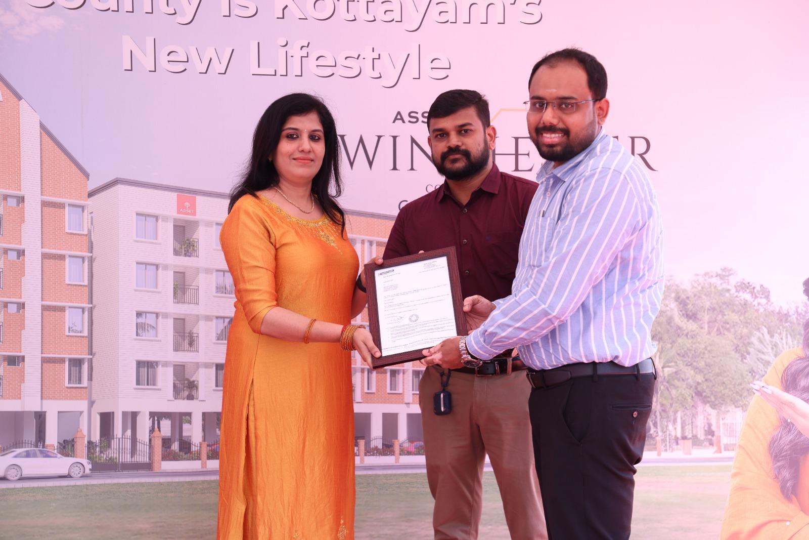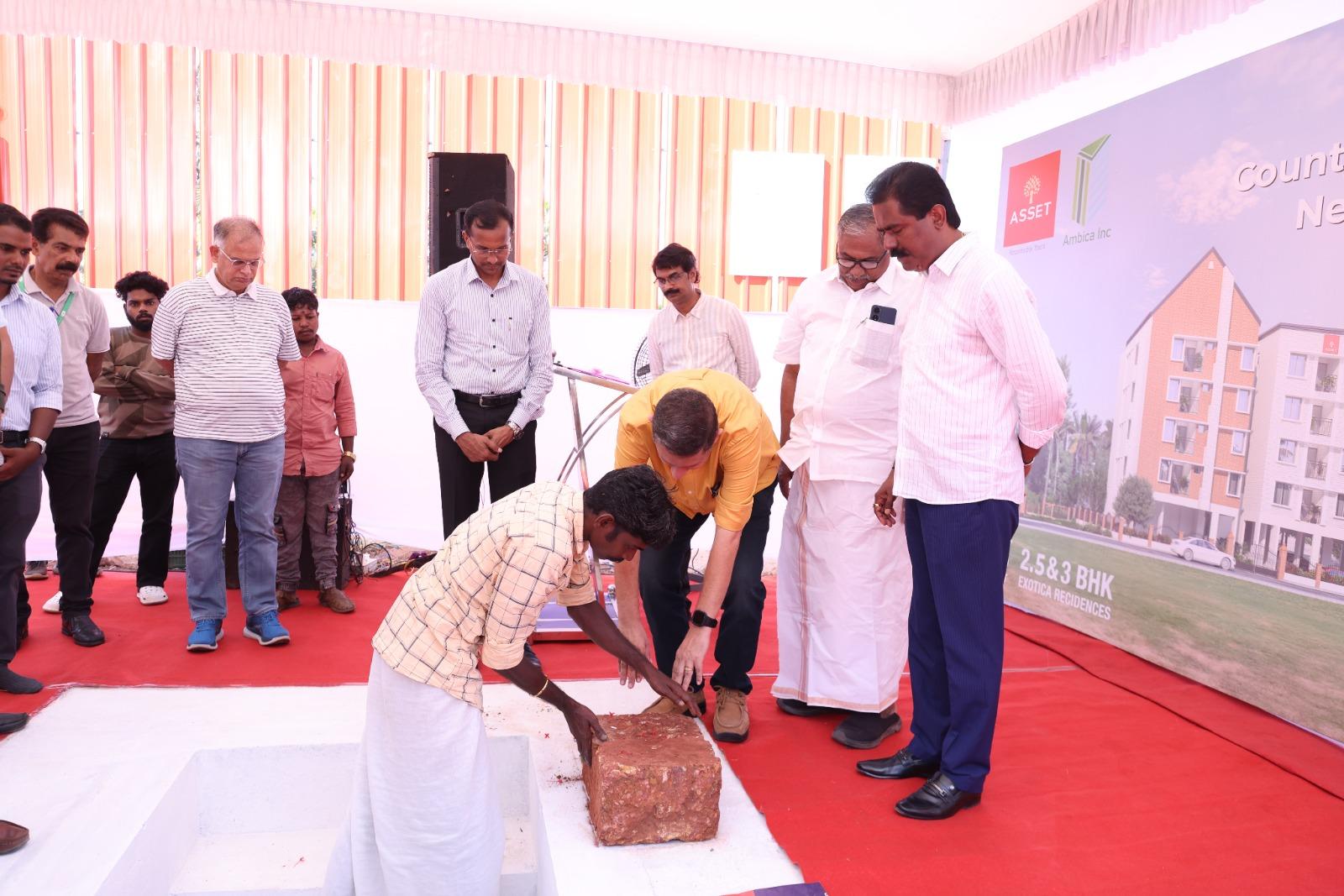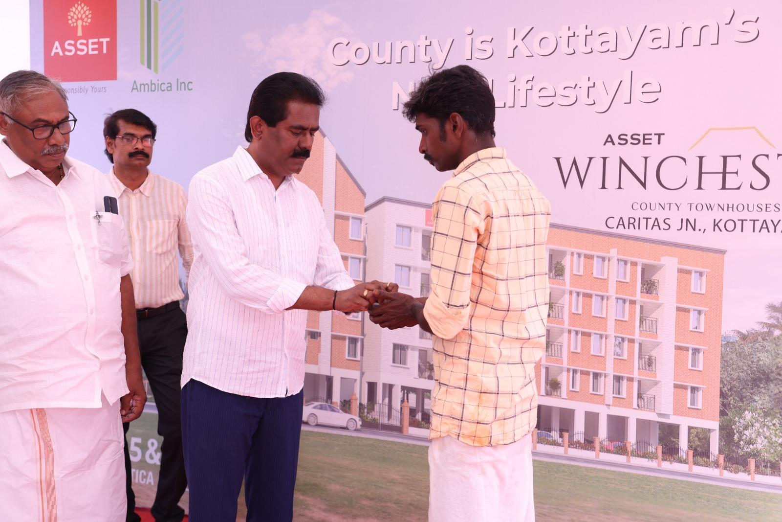 The foundation stone Asset Winchester, the county-style residential project by Asset Homes at Caritas Junction, Kottayam, was laid jointly by Councillor Mrs. Ansu Joseph, Founder and Managing Director of Asset Homes Mr. Sunil Kumar V, Mr. Joseph Simon of Ambika Constructions. The 108th project has 2.5 and 3 BHK apartments. Mr. Sunil Kumar V handed over the first copy of the brochure of Asset Winchester to Channel Partner Shri. Jinu C P. Asset Homes CEO Mr. Tony John welcomed the gathering and Asset Homes Kottayam Branch Head Mr. Clint J Elanjical proposed the vote of thanks.