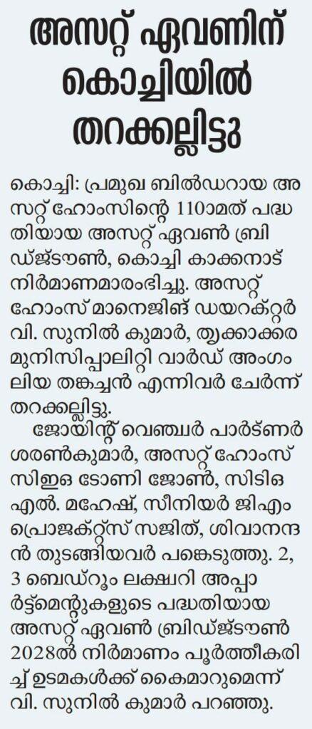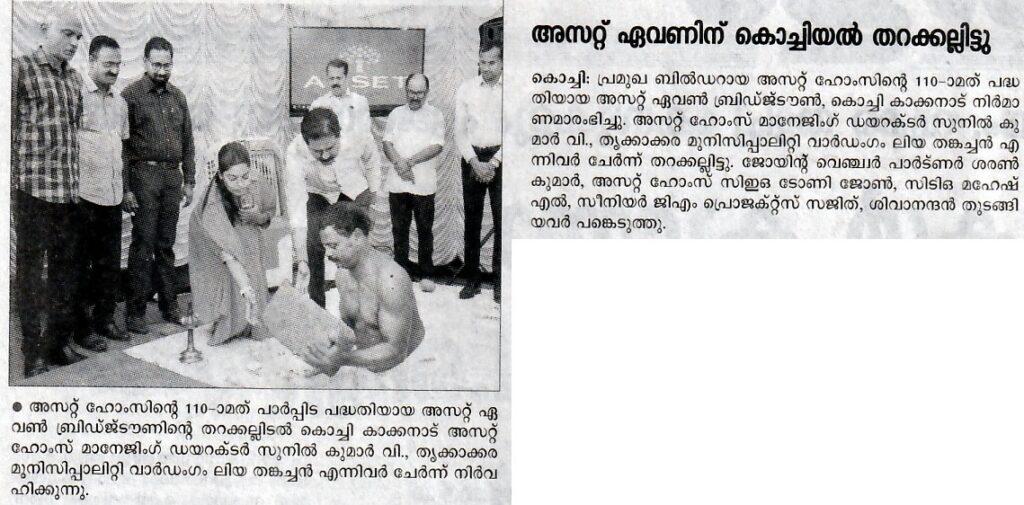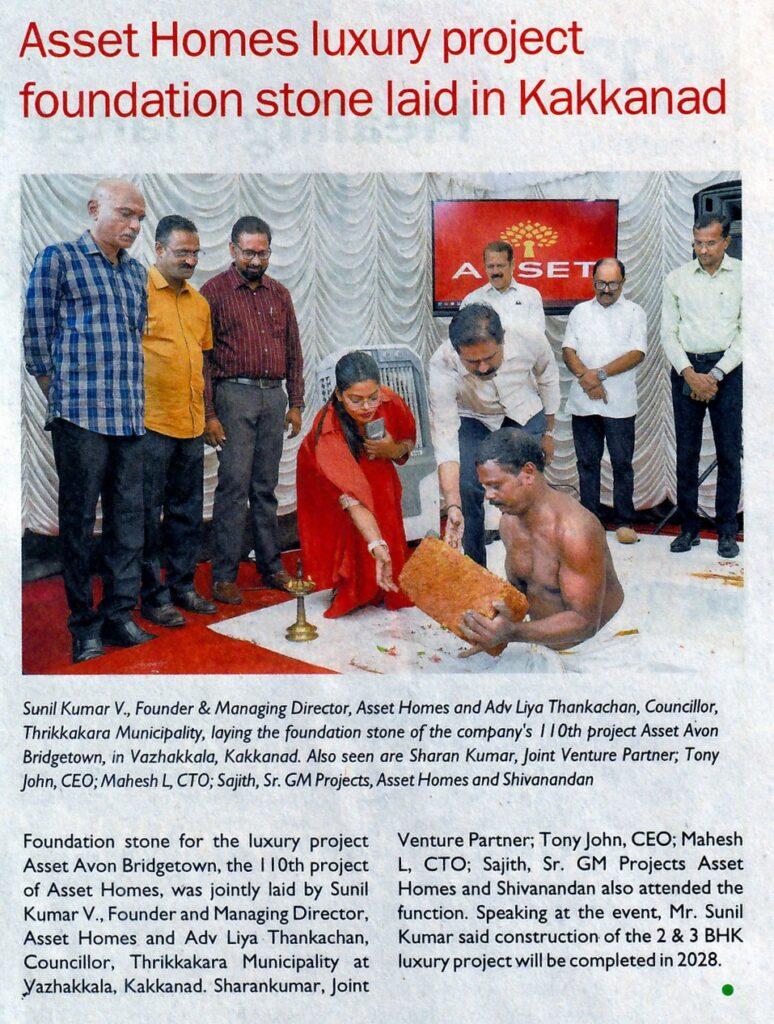 The foundation stone laying ceremony for Asset The Avon Bridgetown, Vazhakkala, Kochi, marked the commencement of Asset Homes' 110th project. This event was graced by customers and well-wishers, setting the stage for a remarkable addition to our Exotica category, featuring luxurious 2/3-BHK apartments.