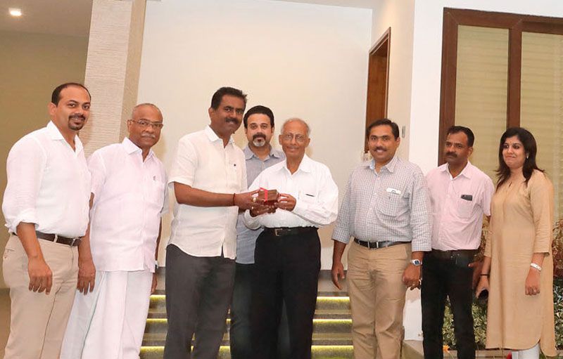 Sunil Kumar V., MD, hands over the key to the first completed villa of the Super Luxury Private Villa Project, Asset Insignia, to Dr. George Varkey Thalody.