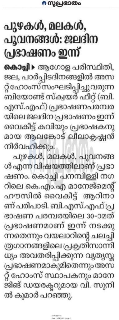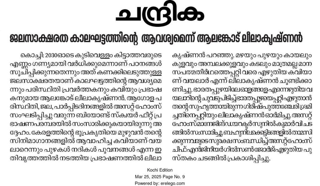 1. https://timeskerala.com/kerala/water-literacy-is-the-need-of-the-hour-alankode-leelakrishnan