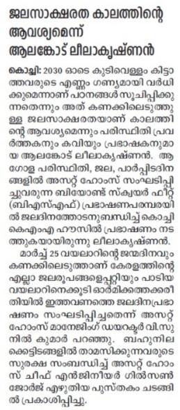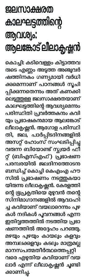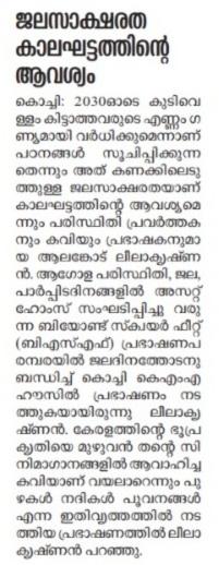 1. https://timeskerala.com/kerala/water-literacy-is-the-need-of-the-hour-alankode-leelakrishnan