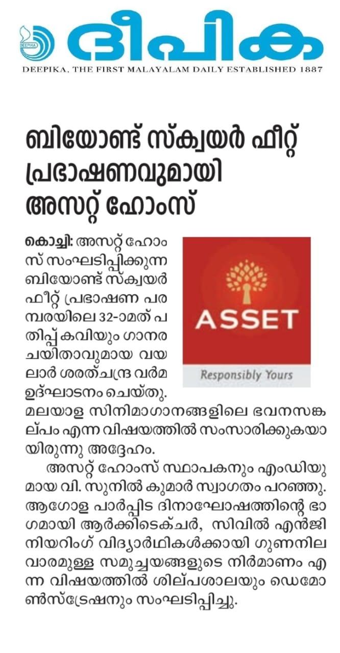 The gathering was formally welcomed by Mr. V. Sunil Kumar, Founder and Managing Director of Asset Homes. In conjunction with the World Habitat Day festivities, a workshop and demonstration focusing on the construction of quality housing complexes were also organised for architecture and civil engineering students. This initiative reinforced Asset Homes’ dedication to fostering sustainable and meaningful living spaces.