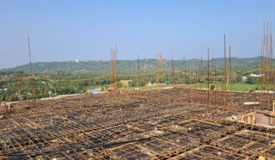 Reinforced cement concrete framed structure with solid cement blocks in fill walls.